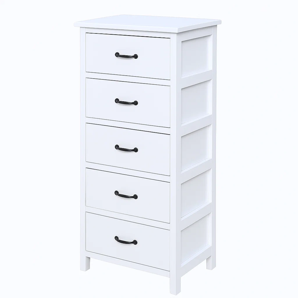 Cassettiera Verticale 5 Cassetti Legno Bianco