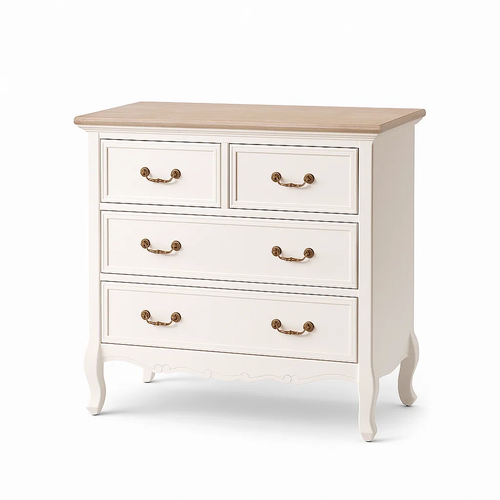 Cassettiera in Legno Bianco con Maniglie in Metallo 4 Cassetti