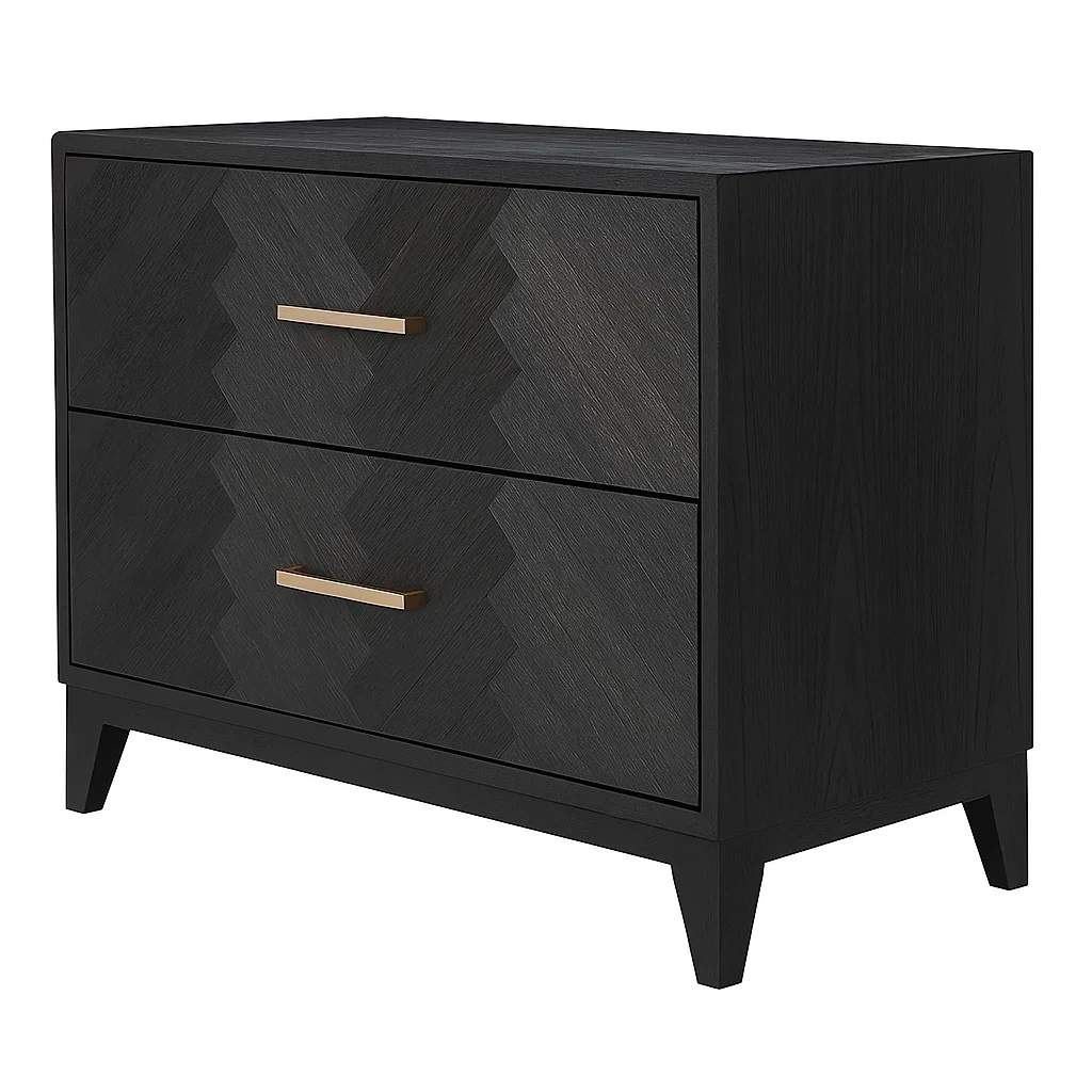 Cassettiera in Legno di Pino Verniciato Bianco con Top Effetto Rovere e Maniglie in Ottone