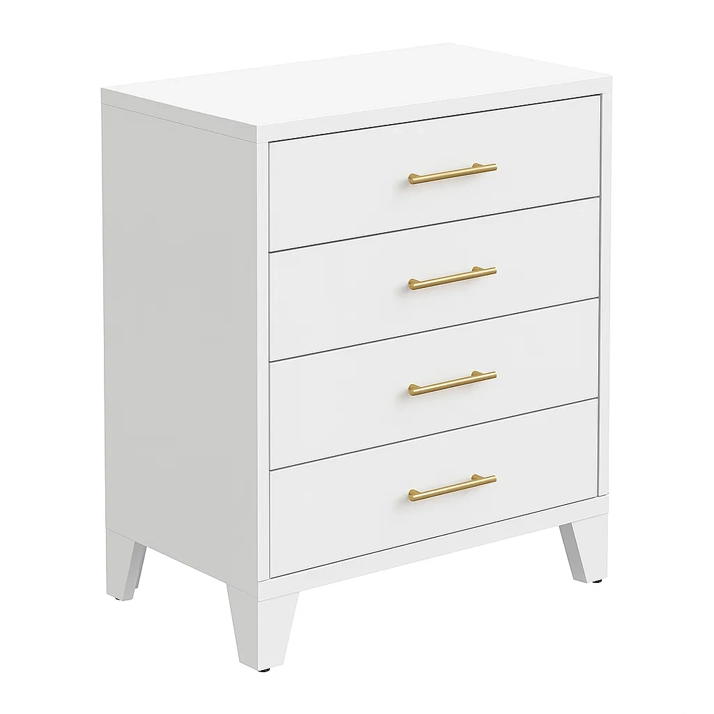 Cassettiera in Legno Bianco con Maniglie in Metallo 4 Cassetti
