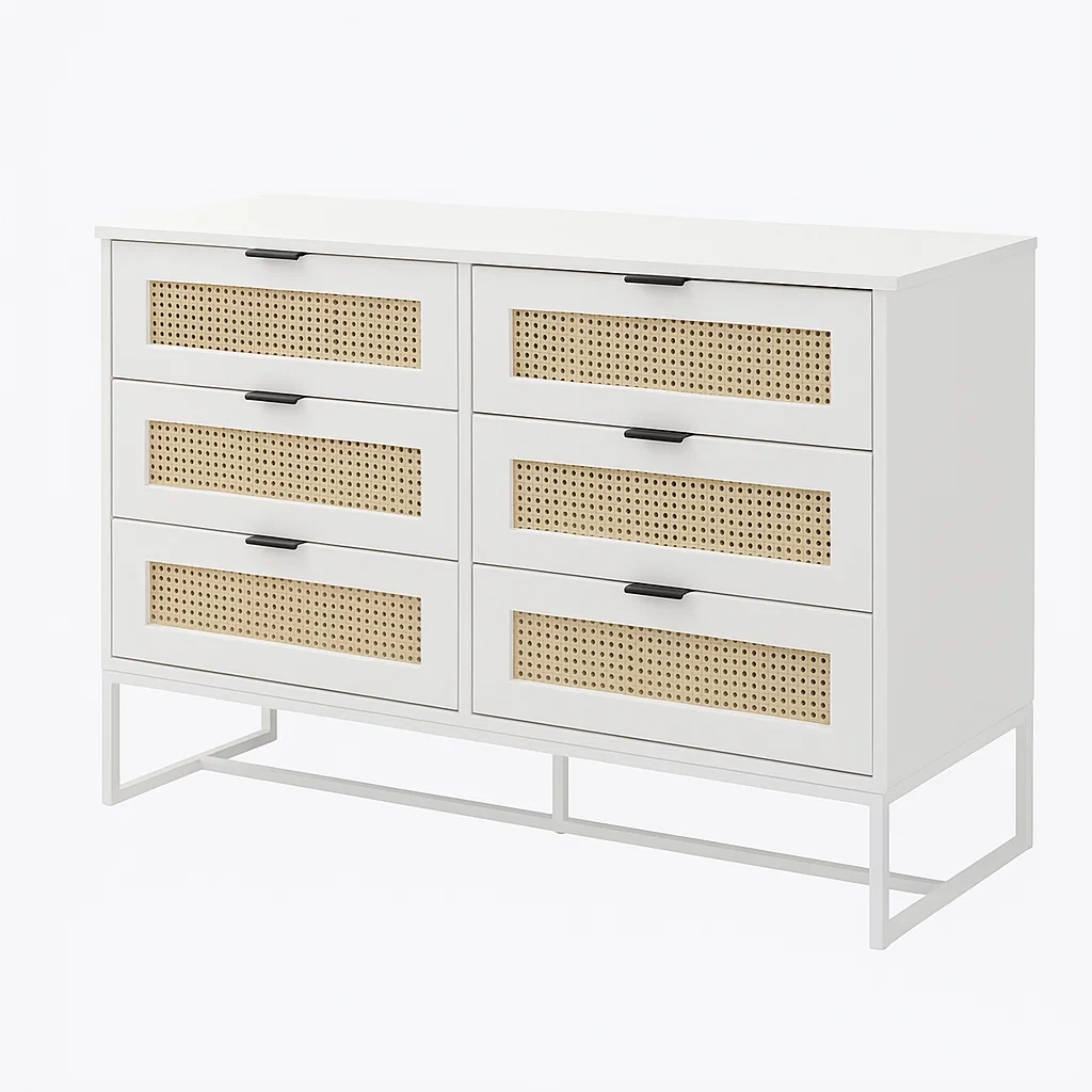 Materiali: Struttura in legno MDF, pannelli in rattan naturale, maniglie in metallo